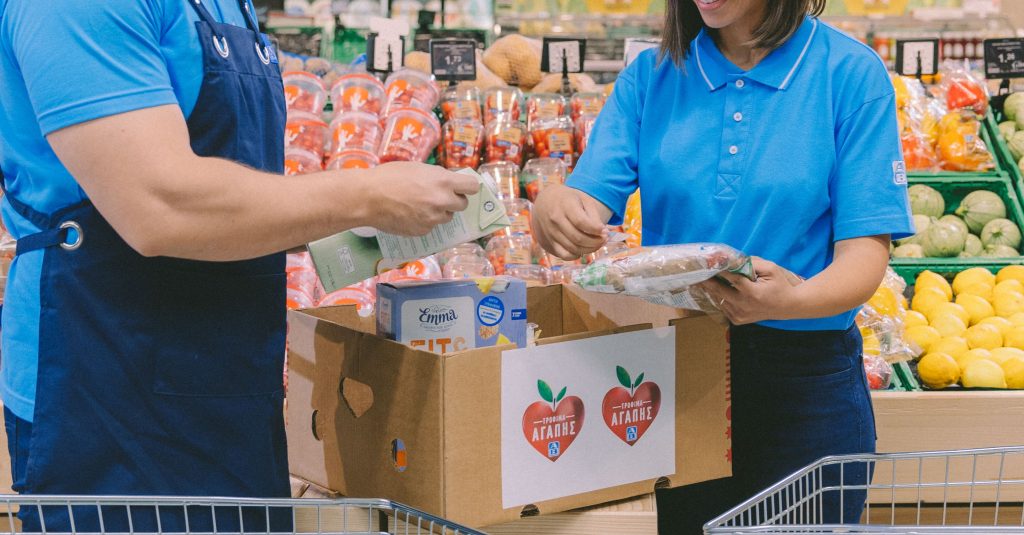 Στην ΑΒ φροντίζουμε την τοπική κοινωνία και το περιβάλλον, μέσα από το πιο πρωτοποριακό μας πρόγραμμα δωρεάς κοντόληκτων τροφίμων «Τρόφιμα Αγάπης». Τρόφιμα τα οποία, ενώ είναι κατάλληλα για κατανάλωση, δεν μπορούν να διατεθούν προς πώληση, επειδή βρίσκονται κοντά στην ημερομηνία λήξης τους ή έχουν ελαφρώς φθαρμένη συσκευασία, προσφέρονται σε συνανθρώπους μας που αντιμετωπίζουν προβλήματα επισιτιστικής ανασφάλειας με την πολύτιμη βοήθεια της Τράπεζας Τροφίμων και του Μπορούμε. Από την έναρξη του προγράμματος έχουμε προσφέρει τρόφιμα αξίας πάνω από 34 εκατομμύρια ευρώ. Στην ΑΒ έχουμε οραματιστεί ένα μέλλον οπού κανένα πιάτο δεν μένει άδειο και καμία μερίδα φαγητού να μην πηγαίνει χαμένη.